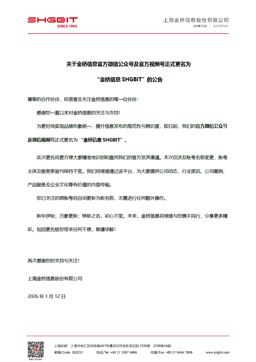 金桥信息官方微信公众号及视频号正式更名!